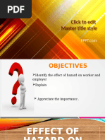 environment, hazards to which the workers are exposed to and steps taken in case of