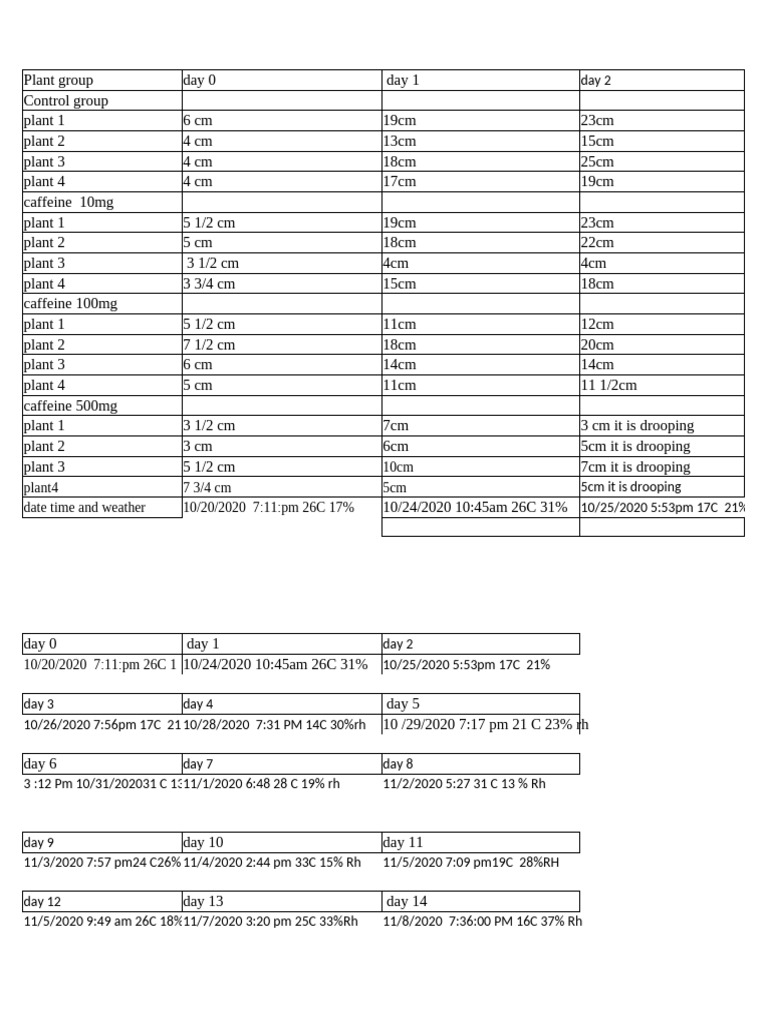Plant group day 0 day 1 day 2