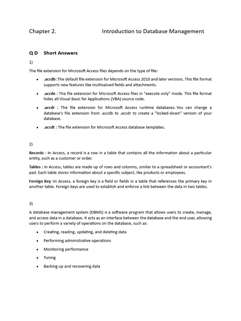 • .accdb :The default file extension for Microsoft Access 2010 and later versions. This file format