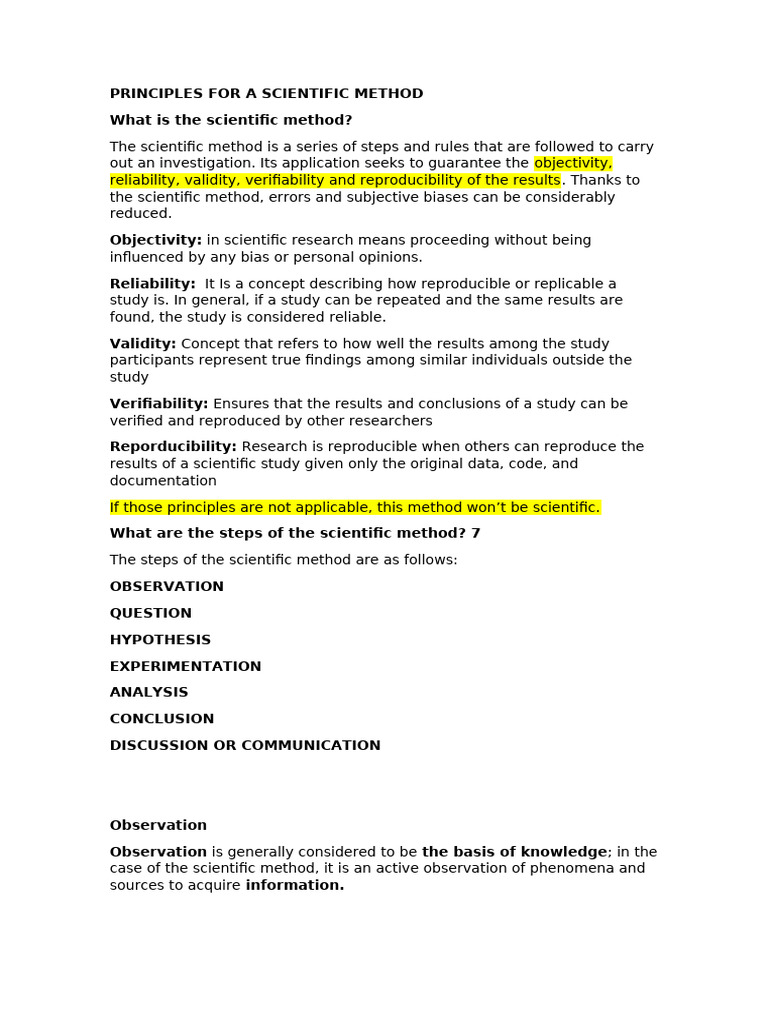 PRINCIPLES FOR A SCIENTIFIC METHOD