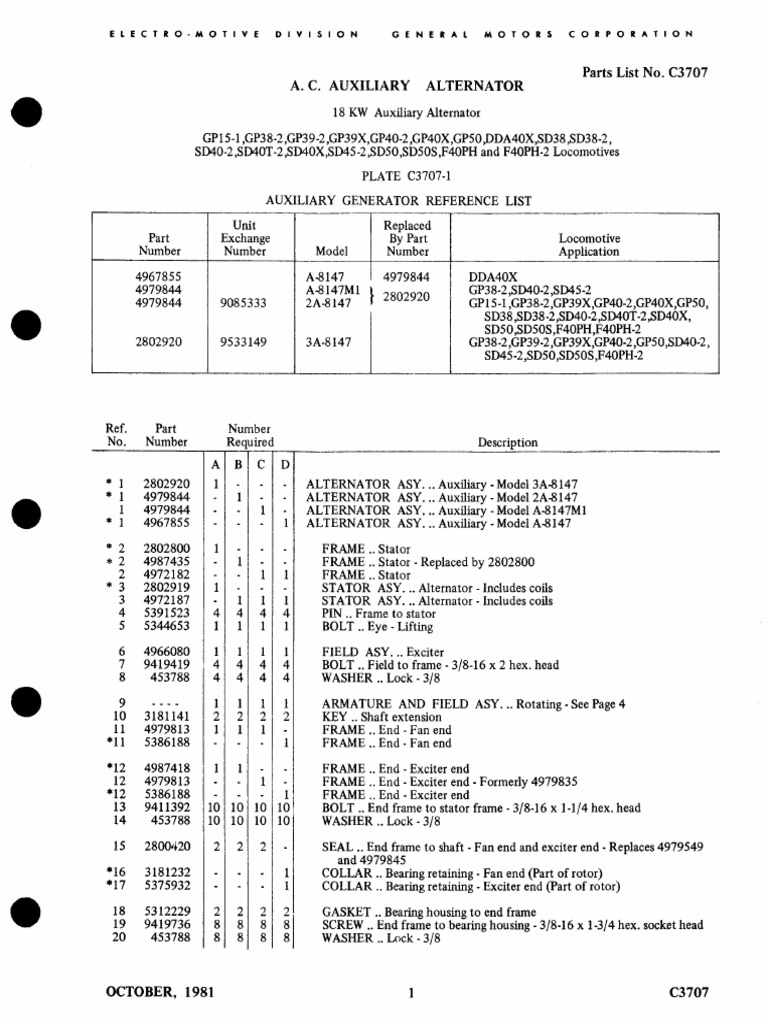 4979844 9085333 2A-8147 GPI 5-1,GP38-2,GP39X,GP40-2,GP40X,GP50,