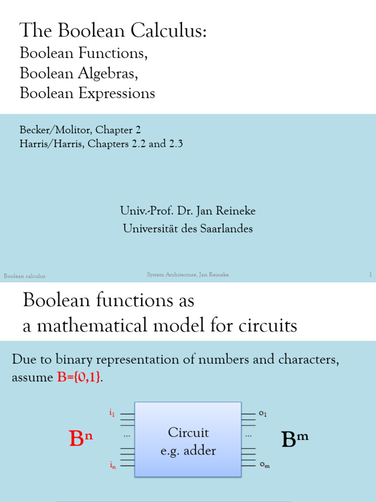 Boolean calculus System Architecture, Jan Reineke 1