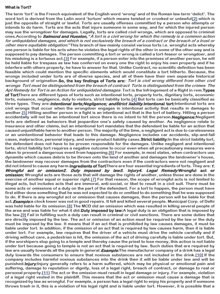 background of [Link], the key findings of Torts are:· Tort is civil wrong different from other civil
