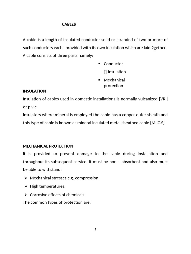 A cable is a length of insulated conductor solid or stranded of two or more of