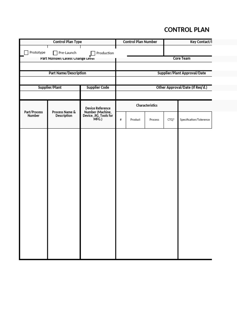 MFG.) # Product Process CTQ? Specification/Tolerence