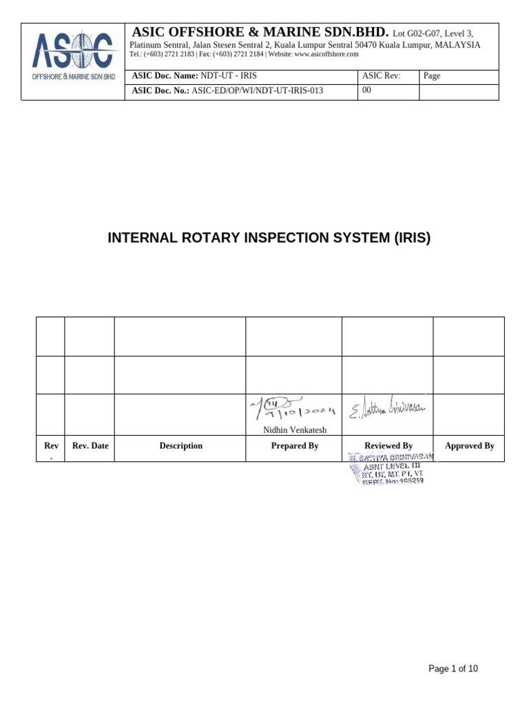 ASIC Doc. No.: ASIC‐ED/OP/WI/NDT-UT-IRIS-013 00