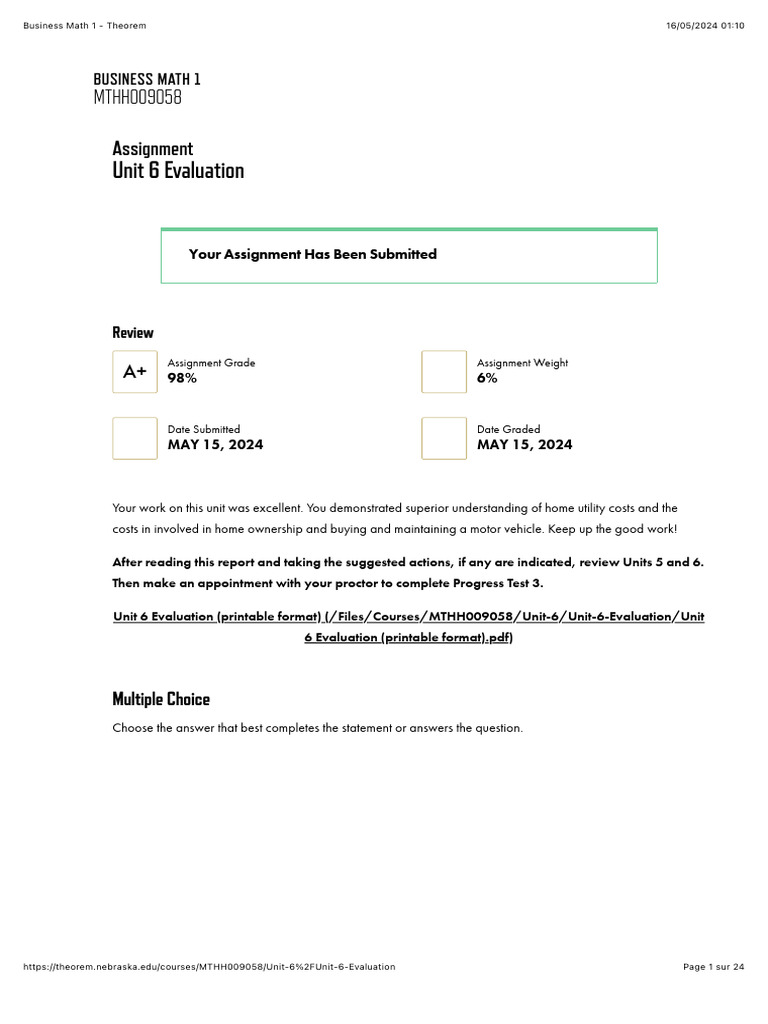 If you have questions about this unit evaluation or about this course, please contact Instructional