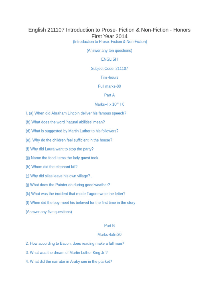English 211107 Introduction to Prose- Fiction & Non-Fiction - Honors