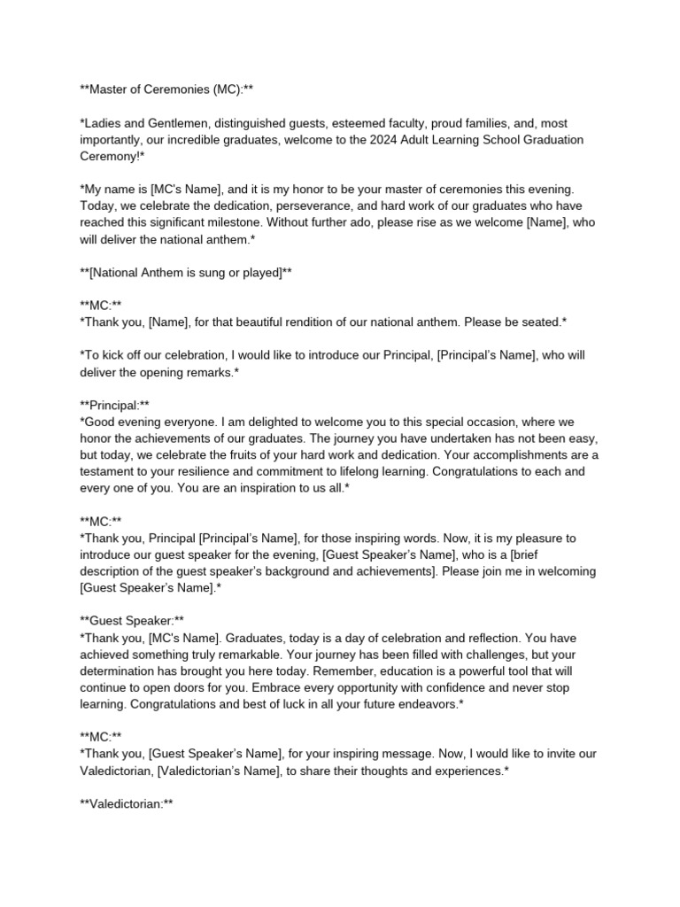 *Thank you, [Valedictorian’s Name], for your heartfelt words. We are now approaching the