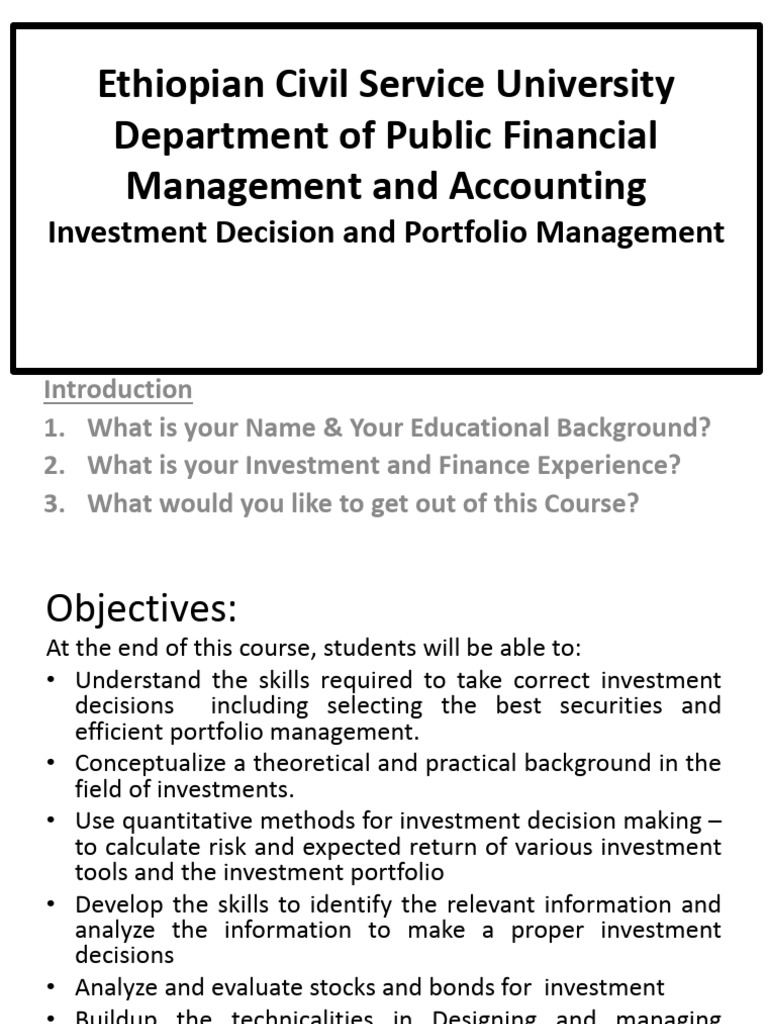 Investment Decision and Portfolio Management