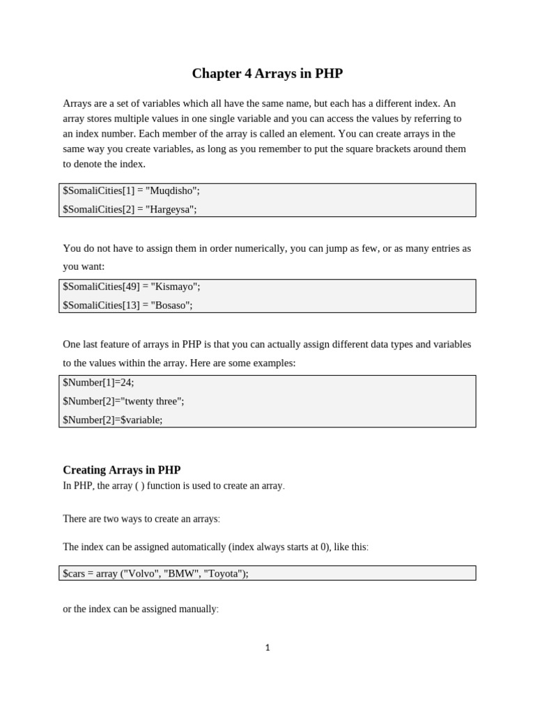 One last feature of arrays in PHP is that you can actually assign different data types and variables