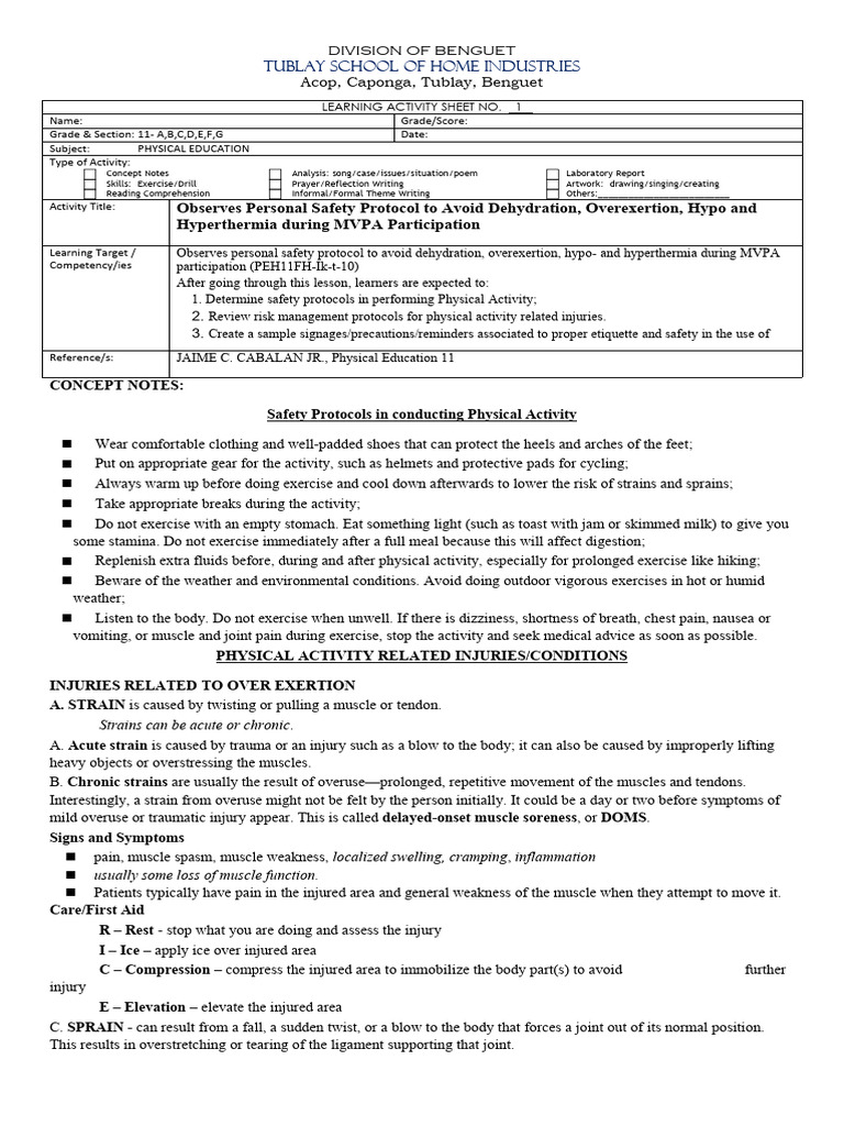 Reference/s: JAIME C. CABALAN JR., Physical Education 11