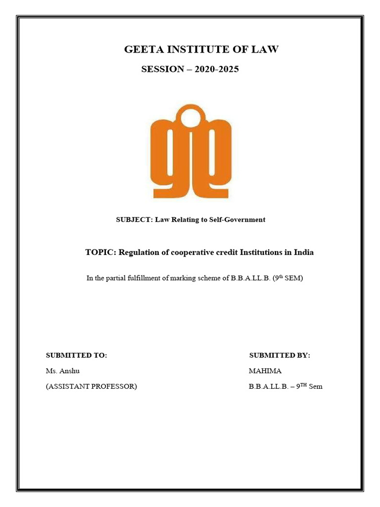 analysis of the regulatory framework governing cooperative credit institutions in India,
