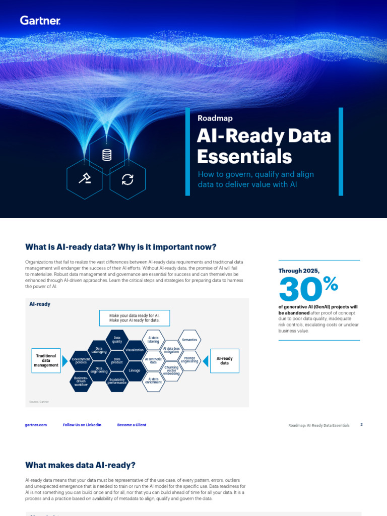 management will endanger the success of their AI efforts. Without AI-ready data, the promise of AI will fail