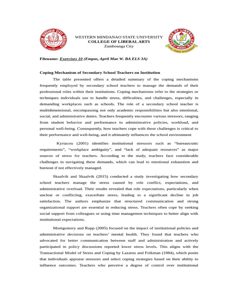 different teachers. Understanding these coping mechanisms is crucial for improving