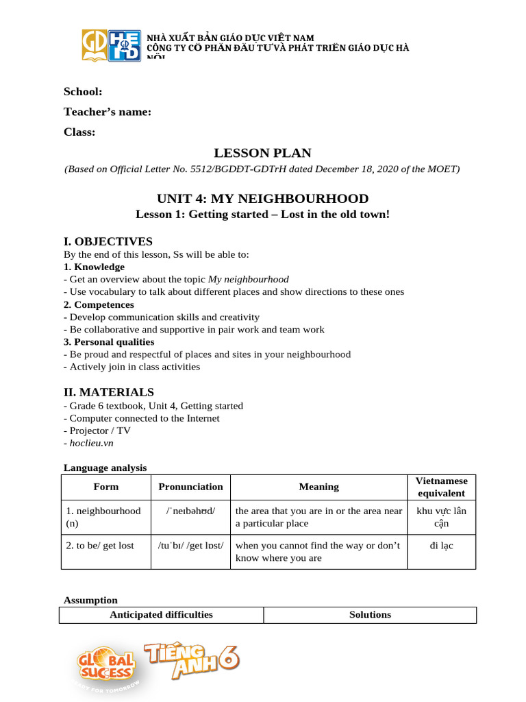 - Grade 6 textbook, Unit 4, Getting started