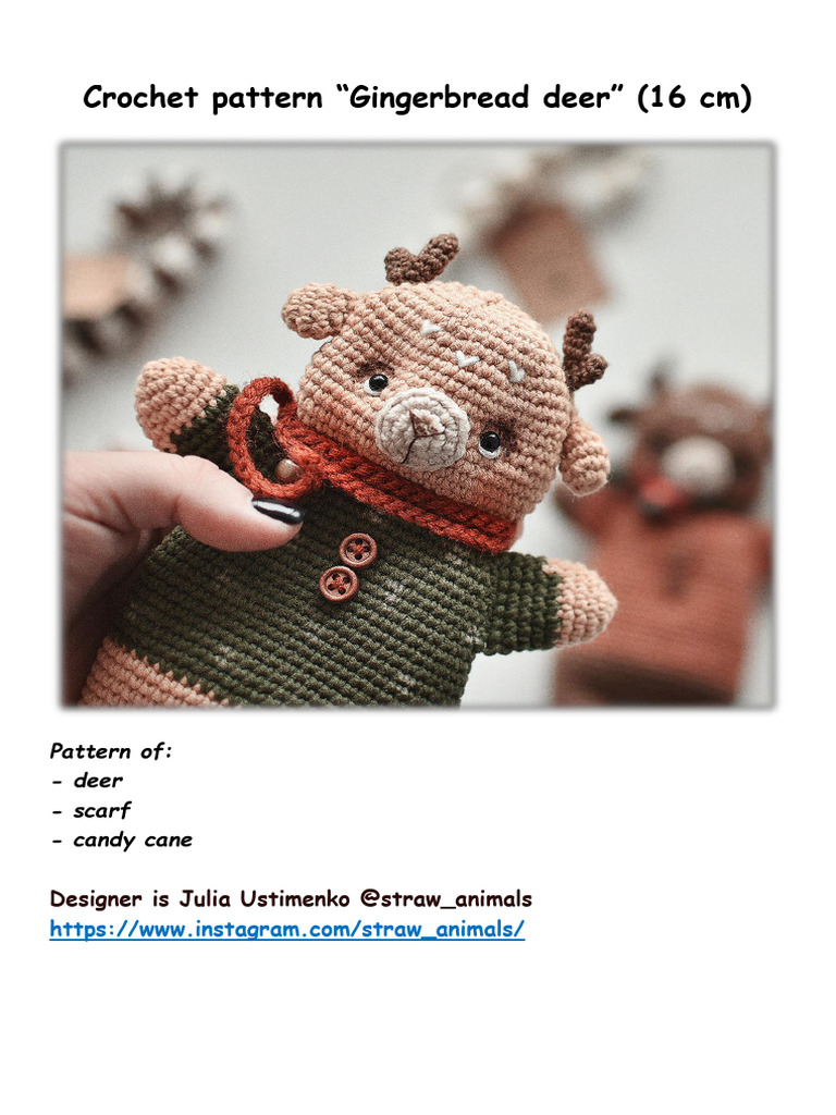 Crochet pattern “Gingerbread deer” (16 cm)