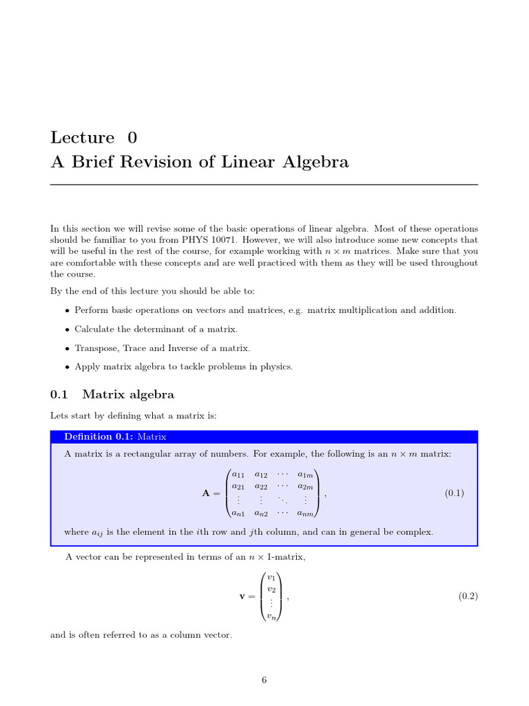 will be useful in the rest of the course, for example working with n ⇥ m matrices. Make sure that you