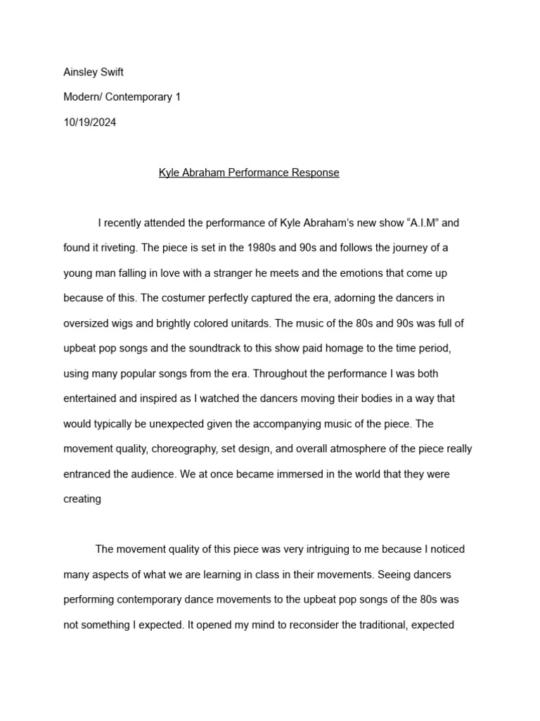 of the dancers that we are learning in class. Seeing those skills applied in a professional