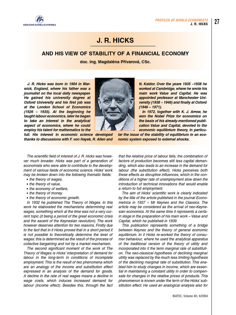 Hicks, however, draws attention to the fact that the 3. Iša, J.: Koniec „keynesovskej revolúcie“? Pravda,