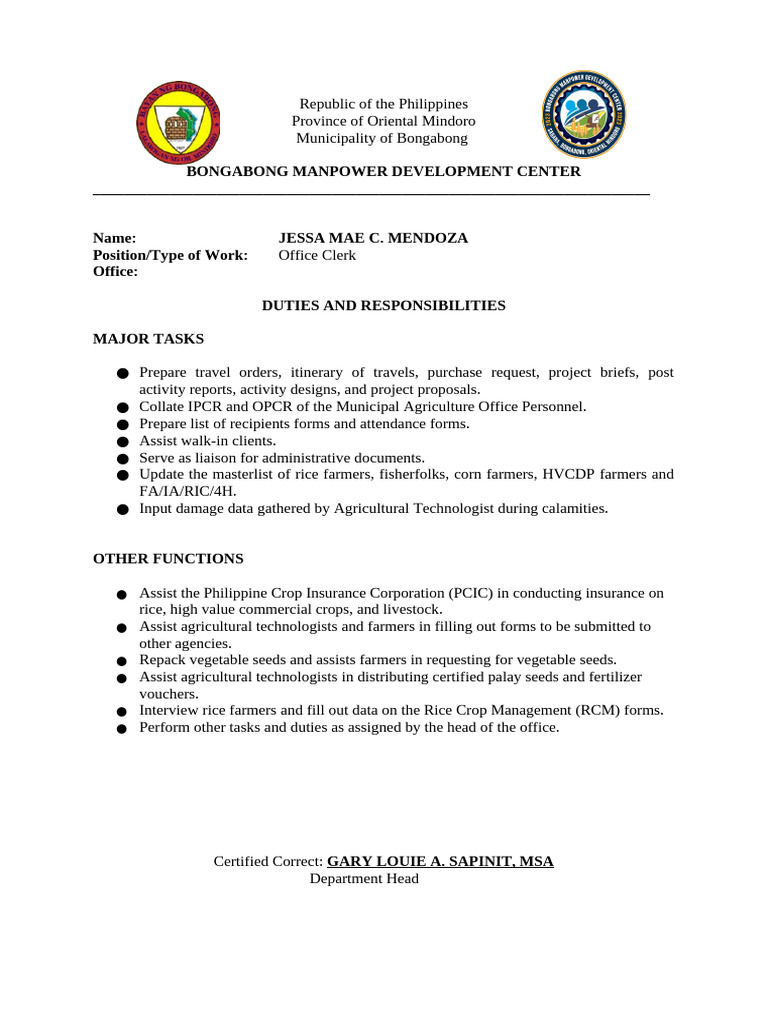 ● Collate IPCR and OPCR of the Municipal Agriculture Office Personnel.