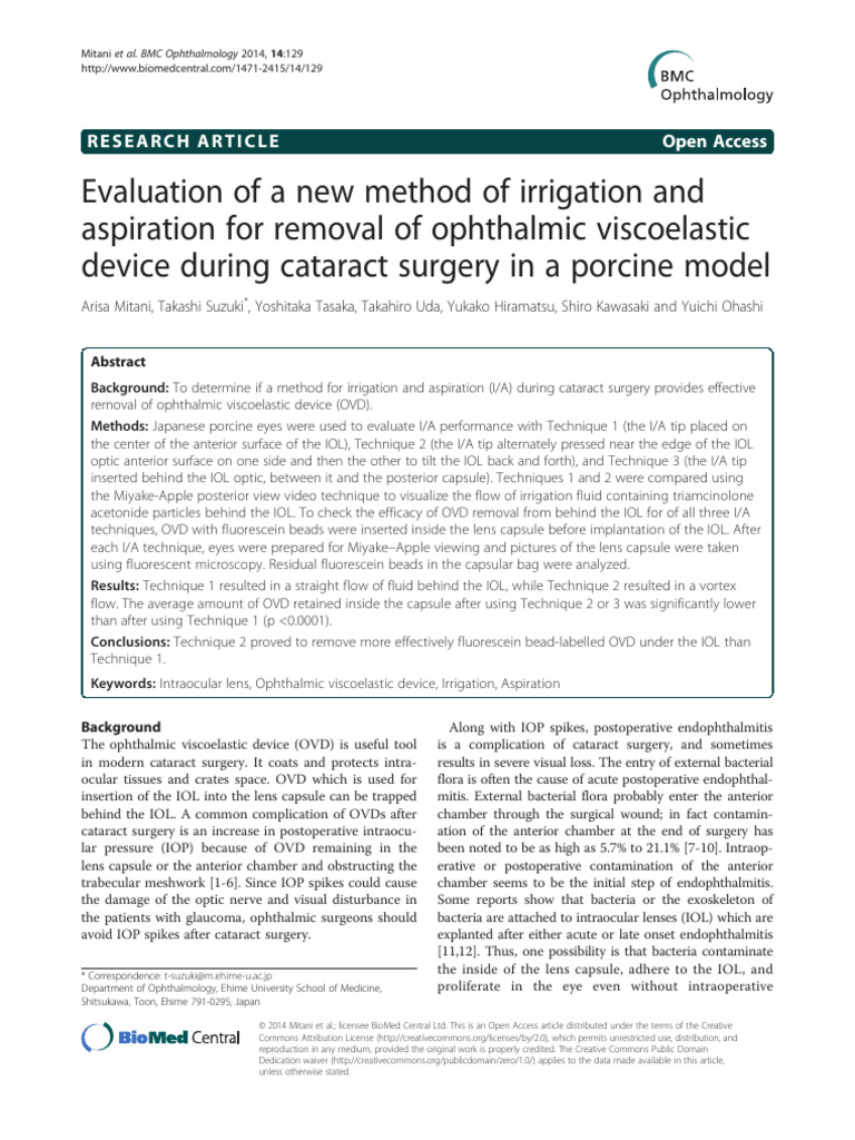 during cataract surgery in a porcine model. BMC Ophthalmology