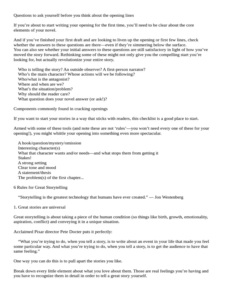 Questions to ask yourself before you think about the opening lines