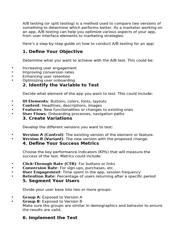 Here’s a step-by-step guide on how to conduct A/B testing for an app:
