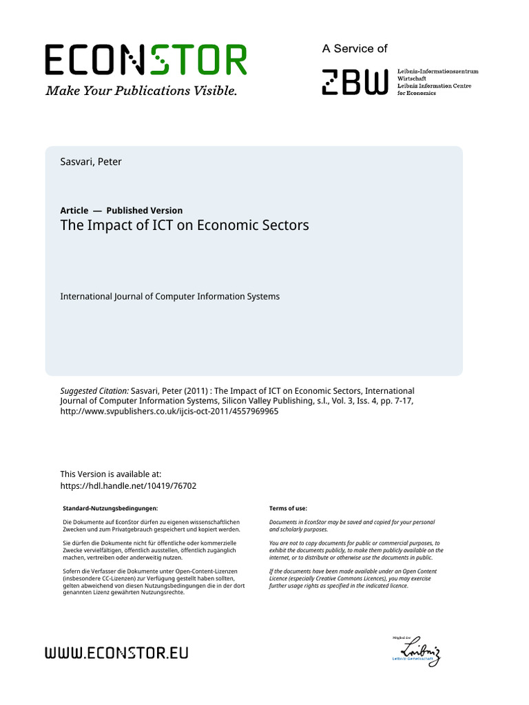 Suggested Citation: Sasvari, Peter (2011) : The Impact of ICT on Economic Sectors, International