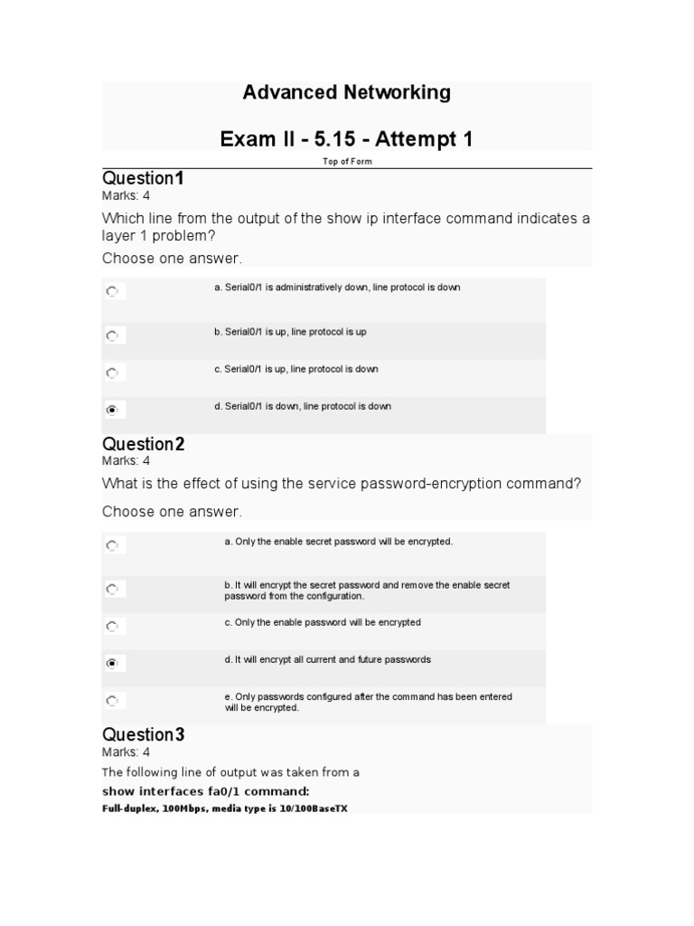 b. It will encrypt the secret password and remove the enable secret password from the configuration. c. Only the enable password will be encrypted