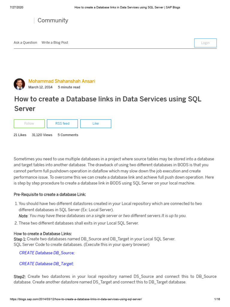 7/27/2020 How to create a Database links in Data Services using SQL Server | SAP Blogs