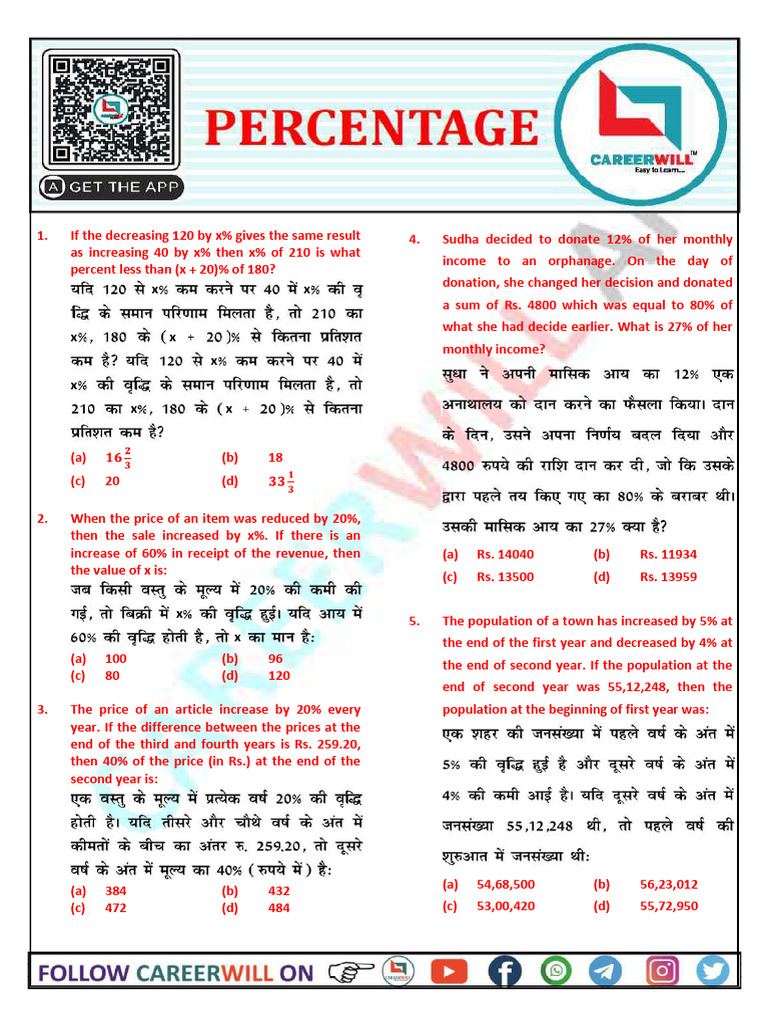 82. Ram sold two bags at Rs 1260 each. On one, he 85. A reduction of 15% in the price of washing