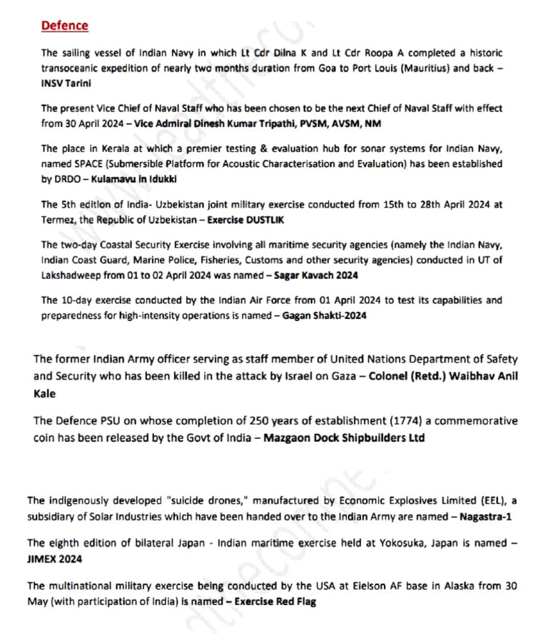 The 7th edition of India-France Joint Military Exercise conducted from 13 to 26 May 2024 at