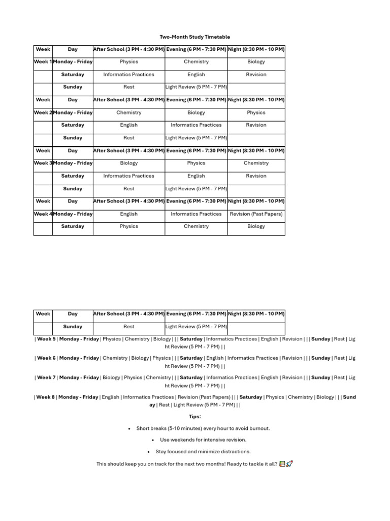 Two-Month Study Timetable