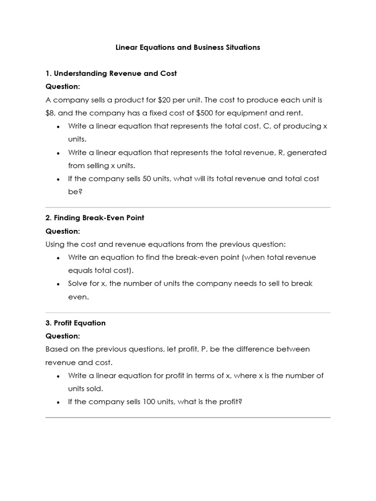 A company sells a product for $20 per unit. The cost to produce each unit is