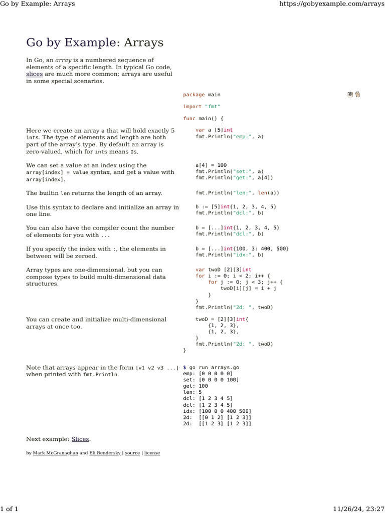 Note that arrays appear in the form [v1 v2 v3 ...] $ go run arrays.go