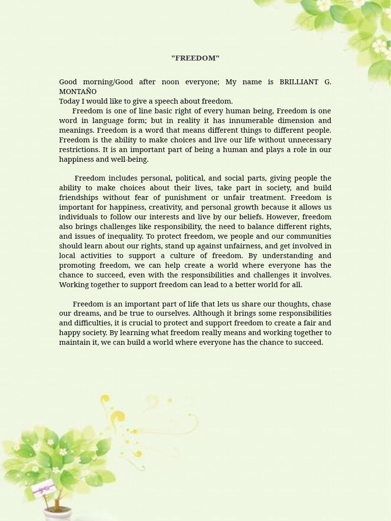 Good morning/Good after noon everyone; My name is BRILLIANT G.