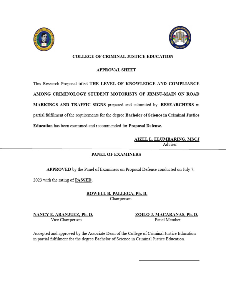 Accepted and approved by the Associate Dean of the College of Criminal Justice Education