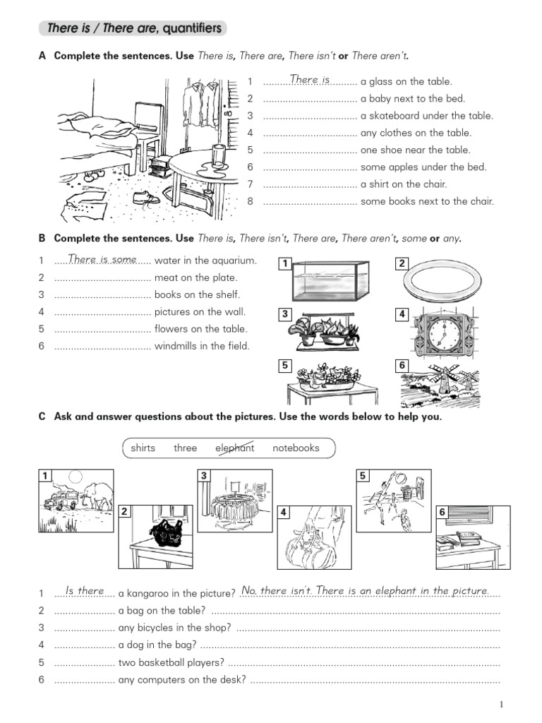 B Complete the sentences. Use There is, There isn’t, There are, There aren’t, some or any.