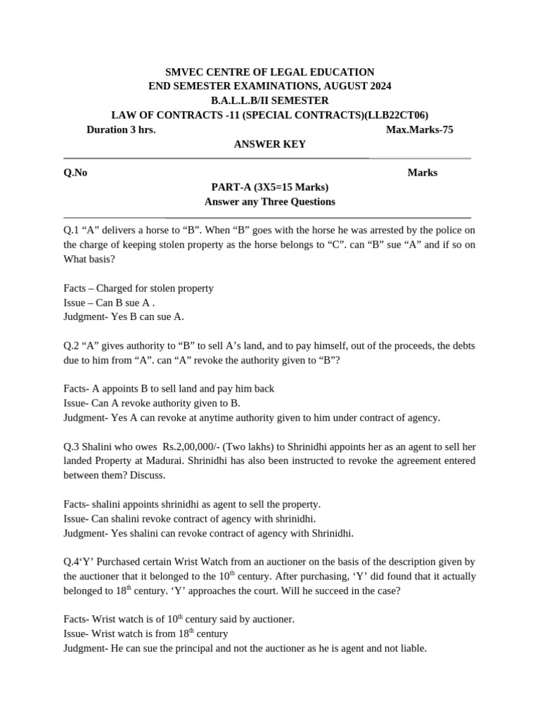LAW OF CONTRACTS -11 (SPECIAL CONTRACTS)(LLB22CT06)