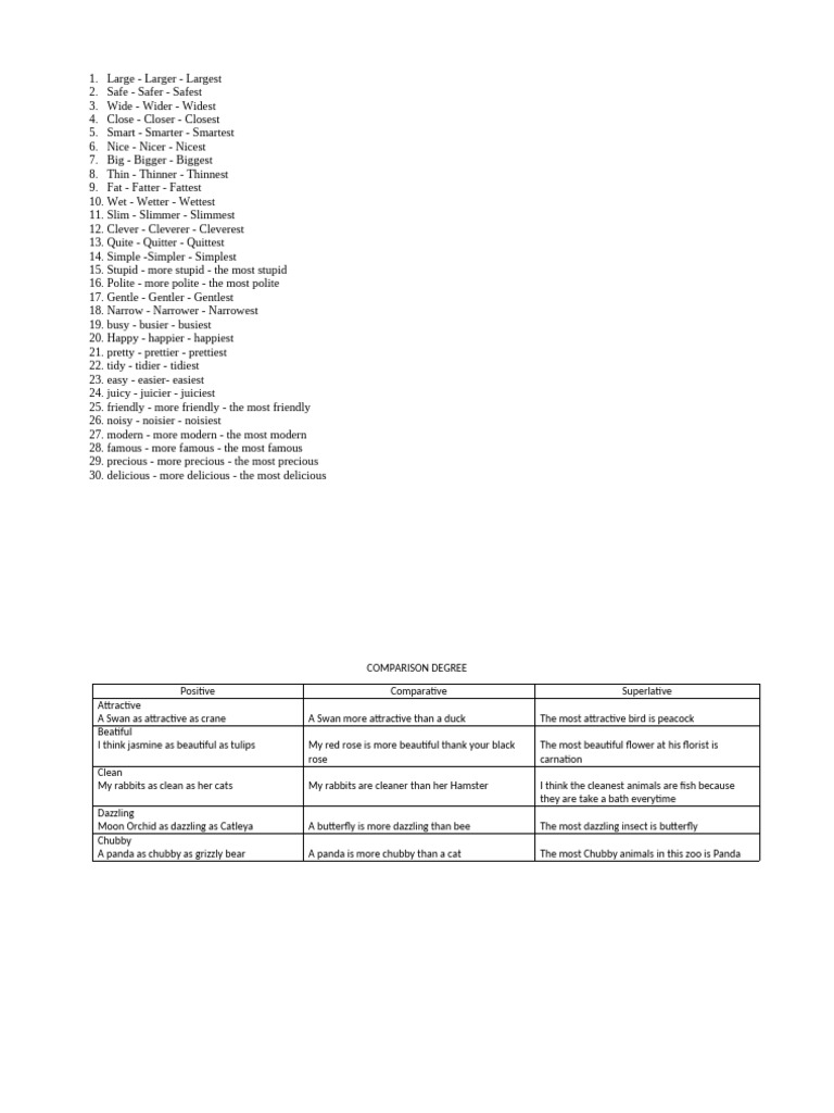 Positive Comparative Superlative