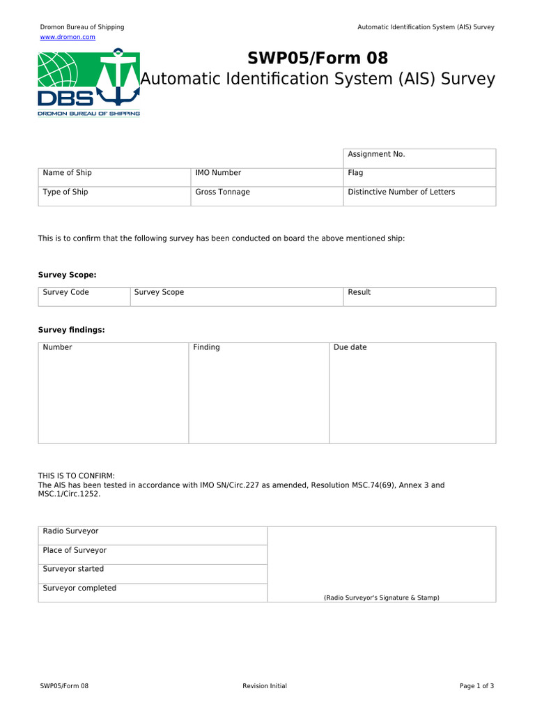 Dromon Bureau of Shipping Automatic Identification System (AIS) Survey
