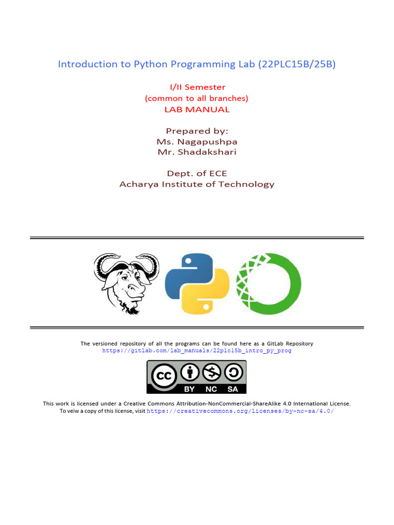 Introduction to Python Programming Lab (22PLC15B/25B)
