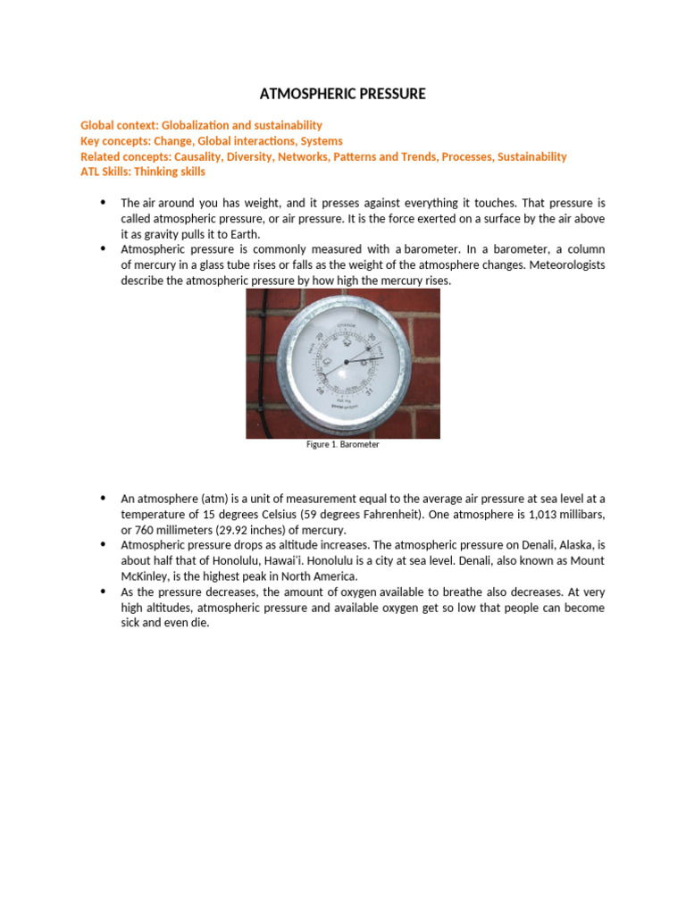 called atmospheric pressure, or air pressure. It is the force exerted on a surface by the air above