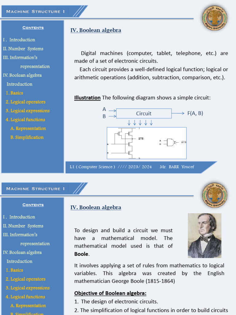 IV. Boolean algebra Boole.