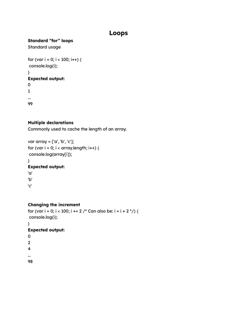 Standard “for” loops