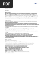 Bachelor’s degree in Chemical Engineering, Production Engineering, or a related field.