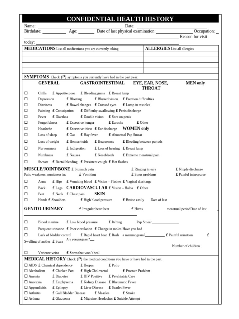 CONFIDENTIAL HEALTH HISTORY