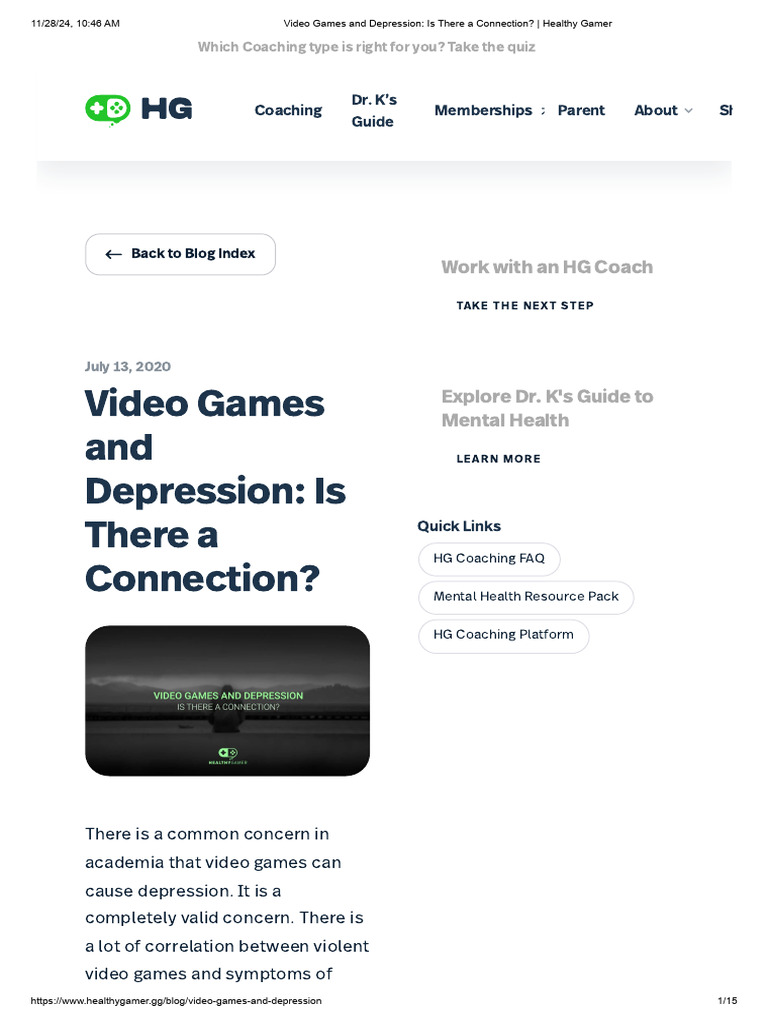 11/28/24, 10:46 AM Video Games and Depression: Is There a Connection? | Healthy Gamer