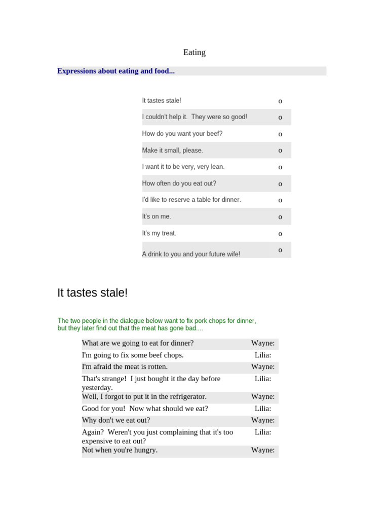 Expressions about eating and food...